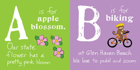 From A to Z, Michigan is an amazing place to be! Children and parents alike will be delighted to see their favorite landmarks and landscapes in a book that is not only educational, but speaks to the heart. ABCs of Michigan will invite little ones to explore their home and discover how wonderful their world is! This is a 32-page casebound board book.